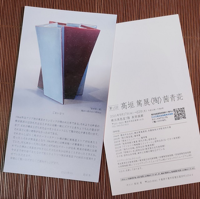 ひとつ目、横浜髙島屋での「高垣 篤〈陶〉茜青瓷」展を鑑賞。