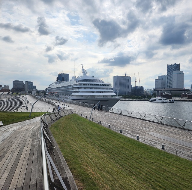 折よく大型客船の「飛鳥Ⅱ」が寄港中、これぞ”ザ・ヨコハマ”だった。
